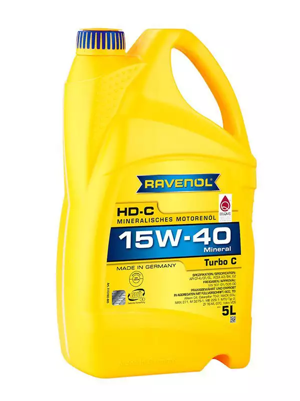 RAVENOL Turbo-C HD-C 15W-40 je visokokvalitetno mineralno multigrade motorno ulje dizajnirano za putničke automobile i kamione sa dizel i benzinskim motorima, uključujući one sa turbo punjačem i direktnim ubrizgavanjem, idealno za upotrebu tokom cijele godine i za produžene intervale zamjene ulja. Pruža izuzetnu adheziju uljnog filma, stabilnost na smicanje, otpornost na starenje, dobro čišćenje, i zaštitu od korozije i mulja, uz dobre karakteristike pri hladnom startu, te je pogodno i za motore sa katalizatorima. Specifikacija: ACEA A3/B4, ACEA E2, API CF, API CF-4, API SL, API SL, VW 501 01, VW 505 00, Allison C4, Caterpillar TO-2, Mack EO-L, MAN 271, MAN M 3275-1, MB 229.1, MTU Typ 2, VOLVO VDS, ZF TE-ML 07C