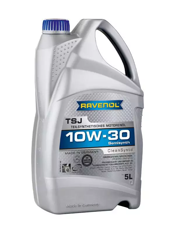 RAVENOL TSJ 10W-30 je polusintetičko motorno ulje niskog trenja sa CleanSynto® tehnologijom, namijenjeno modernim benzinskim i dizel motorima, naročito japanskih i azijskih proizvođača (Honda, Toyota, Nissan, Hyundai, Kia, itd.), koje smanjuje potrošnju goriva i habanje, nudi odličan hladni start i pogodno je za produžene intervale zamjene ulja. Specifikacija: Semi-synthetic, API SQ (RC), ILSAC GF-7A, API SQ Resource Conserving, ILSAC GF-7A, Chrysler MS-6395, Daewoo, Daihatsu, Fiat 9.55535-CR1, Honda, Hyundai, Isuzu, KIA, Mazda, Mitsubishi, Nissan, SsangYong, Subaru, Suzuki, Toyota