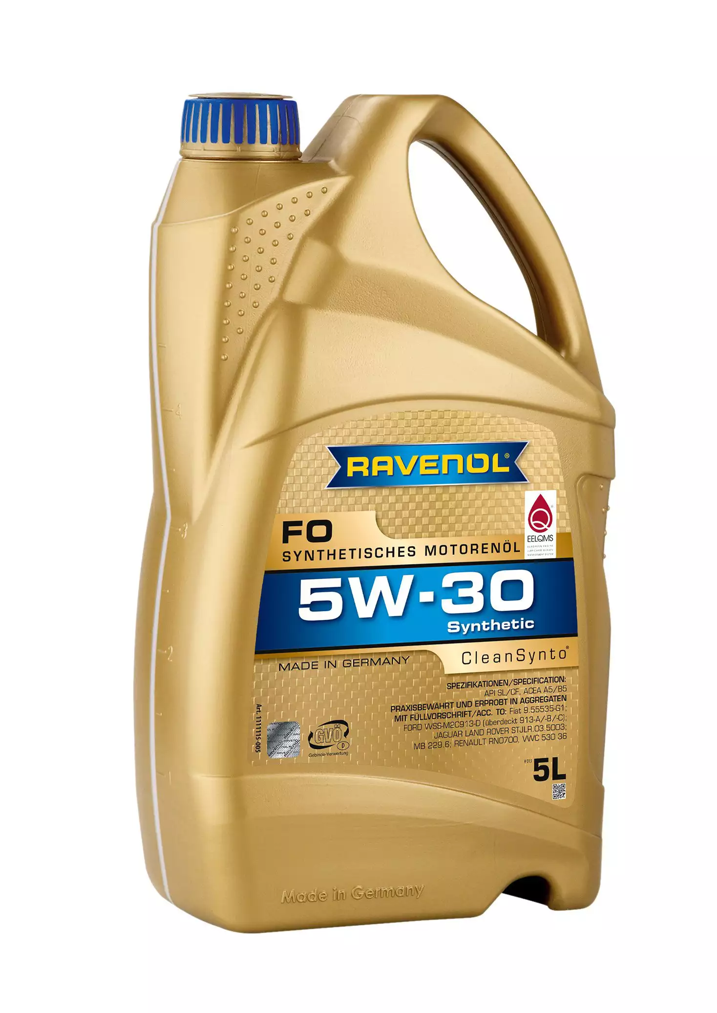 RAVENOL FO SAE 5W-30 je sintetičko, motorno ulje sa niskim trenjem sa CleanSynto® tehnologijom za benzinske i dizel motore putničkih automobila, sa i bez turbopunjača i direktnog ubrizgavanja. RAVENOL FO SAE 5W-30 postiže visok indeks viskoznosti zahvaljujući svojoj formulaciji sa specijalnim baznim uljima. Odlično ponašanje pri hladnom startu pruža optimalnu bezbednost podmazivanja tokom faze hladnog rada. Zbog značajne uštede goriva, RAVENOL FO SAE 5W-30 doprinosi zaštiti životne sredine smanjenjem emisija. RAVENOL FO SAE 5W-30 minimizira trenje, habanje i potrošnju goriva sa odličnim karakteristikama hladnog starta. Pogodno za produžene intervale zamene ulja tamo gde to preporučuje proizvođač. Specijalno preporučen Fordovim motorima. Specifikacija: ACEA A5/B5, API CF, API SL, Fiat 9.55535-G1, Ford WSS-M2C913-A, Ford WSS-M2C913-B, Ford WSS-M2C913-C, Ford WSS-M2C913-D, Jaguar Land Rover STJLR.03.5003, MB 229.6, Renault RN0700, VWC 53036