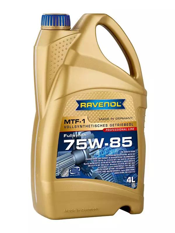 RAVENOL MTF-1 SAE 75W-85 je potpuno sintetičko, niskoviskozno ulje za mjenjače na bazi PAO polialfaolefina namenjeno za ručne mjenjače, prenosne kutije i diferencijale, razvijeno da izdrži ekstremna mehanička i termička opterećenja, nudi odličnu zaštitu od habanja, korozije i penušanja, te omogućava glatko mijenjanje brzina i na niskim temperaturama, čak i uz produžene intervale zamjene ulja. Specifigacija: API GL-4, API GL-5, DTFR 13B150 (MB 235.4), Fiat 9.55550-MZ1, Fiat 9.55550-MZ3, GM 1940182, GM 93740319, Hyundai 04300-00110, Hyundai 04300-00140, Hyundai 08950-00020-A, Hyundai 08950-00020-B, MB 235.4 (A 001 989 14 03), Mitsubishi 3717610, MTF BOT 0063 für F35/MU3 5-speed SAAB/GM/Opel, MTF BOT 402, Nissan 999MP-MTF00P, Nissan KE91699931, Nissan KE91699942, Nissan KLD26-75802, Opel/GM B0402071, Toyota 08885-02606, Toyota 08885-81060, VW G 052 513