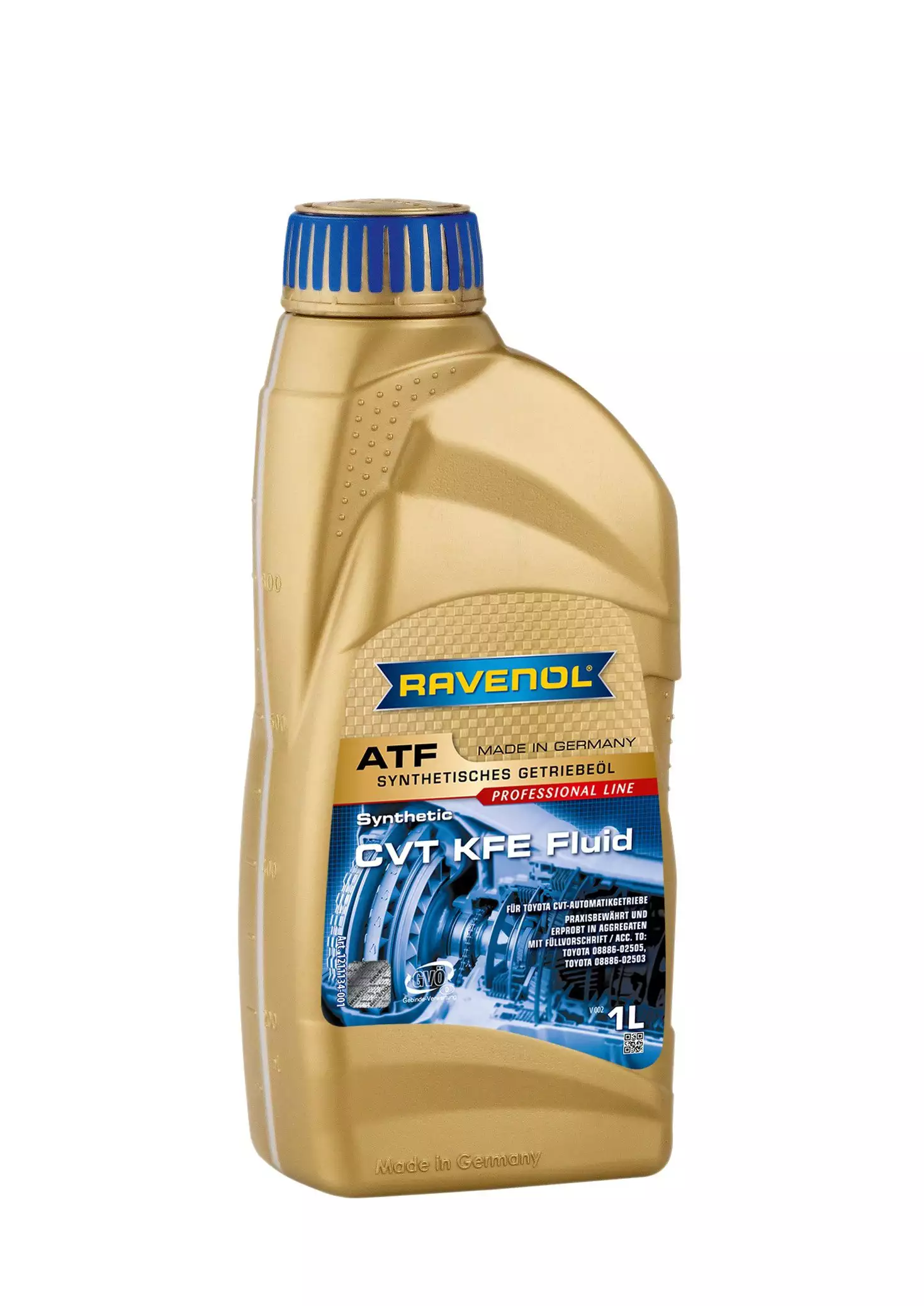 RAVENOL CVT KFE Fluid je potpuno sintetičko, nisko-viskozno ulje visokih performansi, specijalno razvijeno za moderne Toyota CVT mjenjače (kontinualno varijabilna transmisija). Zasnovano je na hidrokrekiranim uljima sa specijalnim aditivima, obezbeđujući optimalan prenos snage, stabilnu viskoznost pod velikim opterećenjem, odlično podmazivanje na niskim temperaturama i zaštitu od habanja. Posebno formulisano kao analogn originalnom Toyota CVT Fluid FE ulju. Obezbjeđuje balansiran koeficijent trenja, sprečava penušanje i oksidaciju. Štiti od korozije i neutralno je prema zaptivnim materijalima. Niska viskoznost (Low Viscosity) omogućava bolju efikasnost menjača. Specifikacija: Toyota 08886-02503, Toyota 08886-0250